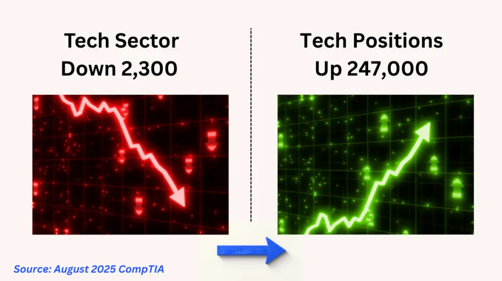 CompTIA’s monthly report for August showed a net increase of about 247,000 new workers in tech roles.